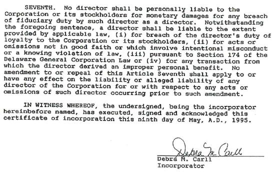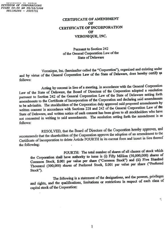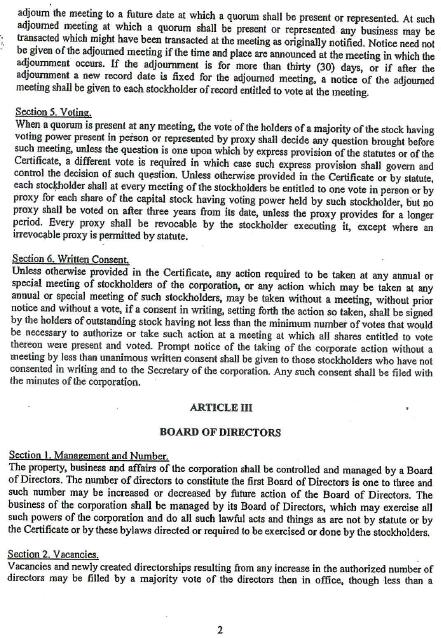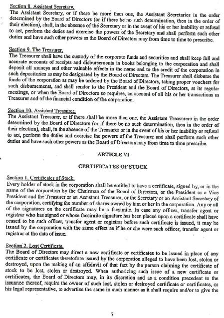 In rendering this opinion, I have reviewed (a) statutes of the State of Delaware, to the extent I deem relevant to the matter opined upon herein; (b) true copies of the Articles of Incorporation of Company and all amendments thereto; (c) the By-Laws of Company; (d) selected proceedings of the board of directors of Company authorizing the issuance of the Shares; (e) certificates of officers of Company and of public officials; (f) and such other documents of Company and of public officials as I have deemed necessary and relevant to the matter opined upon herein.