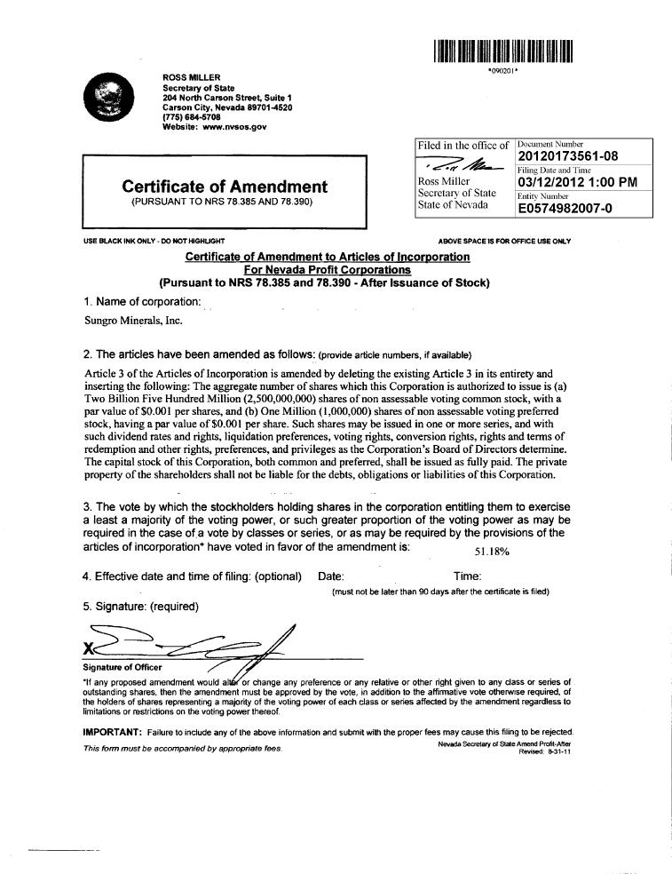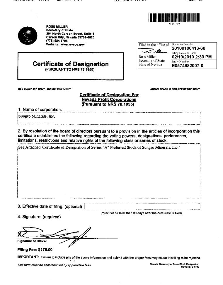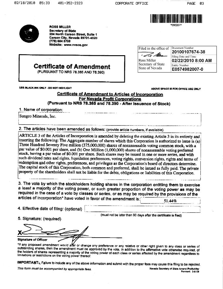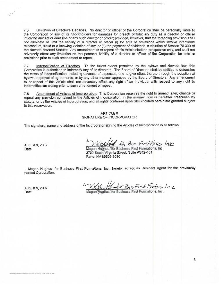 | 2.1 | Articles of Incorporation | |