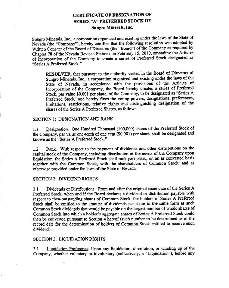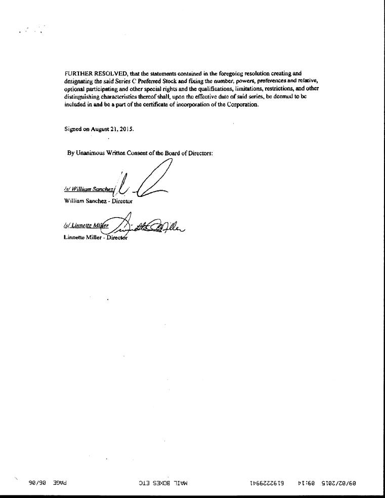 During the month of December 2016, the company issued 100,000 preferred C shares to William Sanchez as compensation for services rendered.