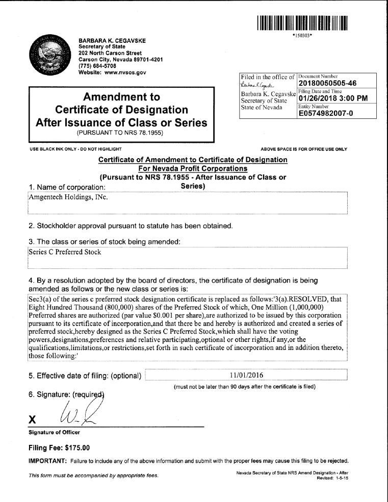 Pursuant to the requirements of Regulation A, the issuer certifies that it has reasonable grounds to believe that it meets all the requirements for filing on Form 1-A and has duly caused this offering statement to be signed on its behalf by the undersigned, thereunto duly authorized in Ormond Beach, FL, on the 27th day of January, 2020.