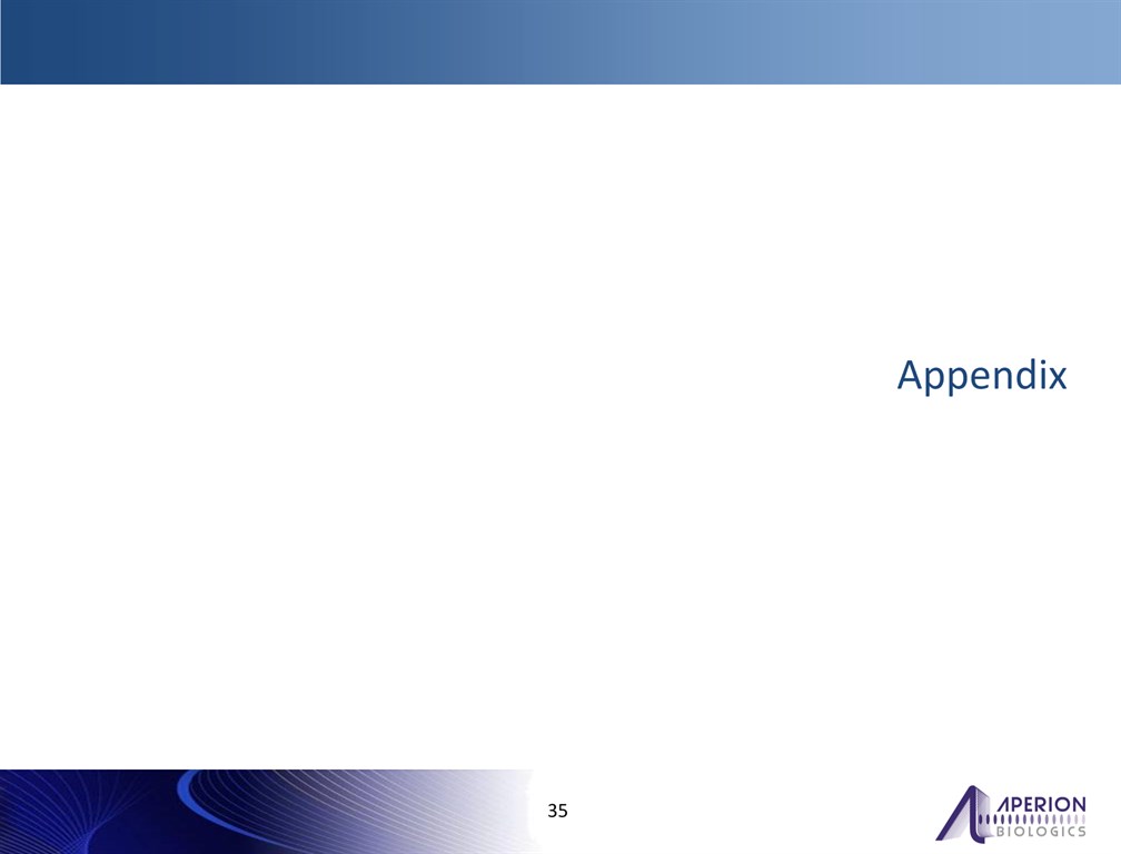 *  DISCLAIMERTHE INFORMATION CONTAINED HEREIN IS PROVIDED SOLELY FOR THE PURPOSE OF ACQUAINTING THE READER WITH APERION BIOLOGICS, INC. (THE “COMPANY” OR “WE”) AND ITS EXECUTIVE PERSONNEL, AND TO SOLICIT ANY INDICATION OF INTEREST IN A POTENTIAL OFFERING OF SECURITIES BY THE COMPANY. IT IS NOT AN OFFER TO SELL NOR IS IT A SOLICITATION OF ANY OFFER TO BUY ANY SECURITIES AND CONVEYS NO RIGHT, TITLE OR INTEREST IN THE COMPANY OR THE PRODUCTS OF ITS BUSINESS ACTIVITIES. NO MONEY OR OTHER CONSIDERATION IS BEING SOLICITED IN CONNECTION THIS MEETING AND PRESENTATION, AND IF SENT IN RESPONSE, WILL NOT BE ACCEPTED. NO OFFER TO BUY THE SECURITIES CAN BE ACCEPTED AND NO PART OF THE PURCHASE PRICE CAN BE RECEIVED UNTIL AN OFFERING STATEMENT ON FORM 1-A IS QUALIFIED PURSUANT TO REGULATION A OF THE SECURITIES ACT OF 1933, AS AMENDED, AND ANY SUCH OFFER MAY BE WITHDRAWN OR REVOKED, WITHOUT OBLIGATION OR COMMITMENT OF ANY KIND, AT ANY TIME BEFORE NOTICE OF ITS ACCEPTANCE GIVEN AFTER THE QUALIFICATION DATE. ANY PERSON'S INDICATION OF INTEREST IN THE MEETING INVOLVES NO OBLIGATION OR COMMITMENT OF ANY KIND. THE INFORMATION CONTAINED HEREIN IS CONFIDENTIAL AND STRICTLY PROPRIETARY. BY ACCEPTING THIS DOCUMENT, THE RECIPIENT AGREES NOT TO REPRODUCE ITS CONTENTS NOR DISCLOSE OR DISTRIBUTE SAME TO ANY PERSON OR ENTITY WITHOUT THE EXPRESSED PRIOR CONSENT OF THE COMPANY. THIS PRESENTATION DOES NOT PURPORT TO BE ALL-INCLUSIVE OR TO CONTAIN ALL OF THE INFORMATION YOU OR ANY PROSPECTIVE INVESTOR MAY DESIRE. YOU SHOULD MAKE YOUR OWN DECISION ON WHETHER THIS INVESTMENT OPPORTUNITY MEETS YOUR INVESTMENT OBJECTIVES AND RISK TOLERANCE LEVEL. ANY PERSON CONSIDERING ENTERING INTO A PROPOSED TRANSACTION SHOULD SEEK ITS OWN INDEPENDENT FINANCIAL AND LEGAL ADVICE.   FORWARD LOOKING STATEMENTSTHIS PRESENTATION CONTAINS FORWARD-LOOKING STATEMENTS THAT ARE BASED ON OUR MANAGEMENT’S BELIEF AND ASSUMPTIONS AND ON INFORMATION CURRENTLY AVAILABLE TO OUR MANAGEMENT. ALTHOUGH WE BELIEVE THAT THE EXPECTATIONS REFLECTED IN THESE FORWARD-LOOKING STATEMENTS ARE REASONABLE, THESE STATEMENTS INVOLVE KNOWN AND UNKNOWN RISKS, UNCERTAINTIES AND OTHER FACTORS THAT MAY CAUSE OUR ACTUAL RESULTS, LEVELS OR PERFORMANCE OR ACHIEVEMENTS EXPRESSED OR IMPLIED BY THESE FORWARD-LOOKING STATEMENTS. ACCORDINGLY, YOU SHOULD NOT PLACE UNDUE RELIANCE ON THESE STATEMENTS. FORWARD-LOOKING STATEMENTS IN THIS PRESENTATION INCLUDE, BUT ARE NOT LIMITED TO, STATEMENTS RELATING TO THE PROJECTED GROWTH OF ACL MARKETS; THE ANTICIPATED COMMERCIALIZATION OF OUR Z-LIG PRODUCTS; THE POTENTIAL APPLICATIONS OF OUR Z-PROCESS AND TECHNOLOGY; OUR STRATEGIES TO REALIZE DEVELOPMENT OPPORTUNITIES; THE TIMING AND STATUS OF CLINICAL TRIALS FOR OUR PRODUCT CANDIDATES; AND OUR ABILITY TO SUCCESSFULLY LAUNCH AND MARKET OUR PRODUCTS. THESE FORWARD LOOKING STATEMENTS ARE SUBJECT TO VARIOUS RISK FACTORS THAT MAY CAUSE ACTUAL RESULTS TO DIFFER MATERIALLY FROM OUR CURRENT EXPECTATIONS. WE HAVE NO CURRENT INTENTION OF UPDATING THE FORWARD-LOOKING STATEMENTS CONTAINED IN THIS PRESENTATION EXCEPT TO THE EXTENT REQUIRED BY LAW. YOU SHOULD THEREFORE NOT RELY ON THESE FORWARD-LOOKING STATEMENTS AS REPRESENTING OUR VIEWS AS OF ANY DATE SUBSEQUENT TO THE DATE OF THIS PRESENTATION.