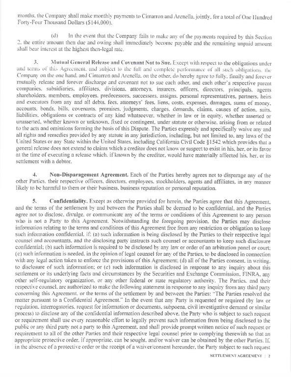 3.1 As compensation for services to be rendered pursuant to this Agreement, Company agrees to pay Executive (A) 50,000,000 shares of Company common stock subject to the Restrictions promulgated under Rule 144 of the Securities Act of 1933 upon execution of this Agreement and (B) the sum of $20,000 per month during the Term of this Agreement.