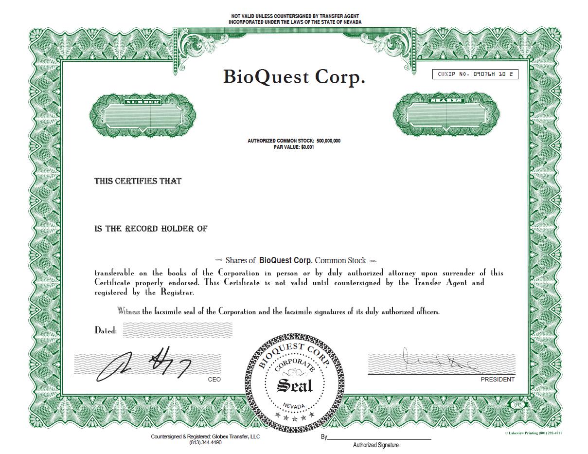 | Issuer: | BioQuest Corp. | |