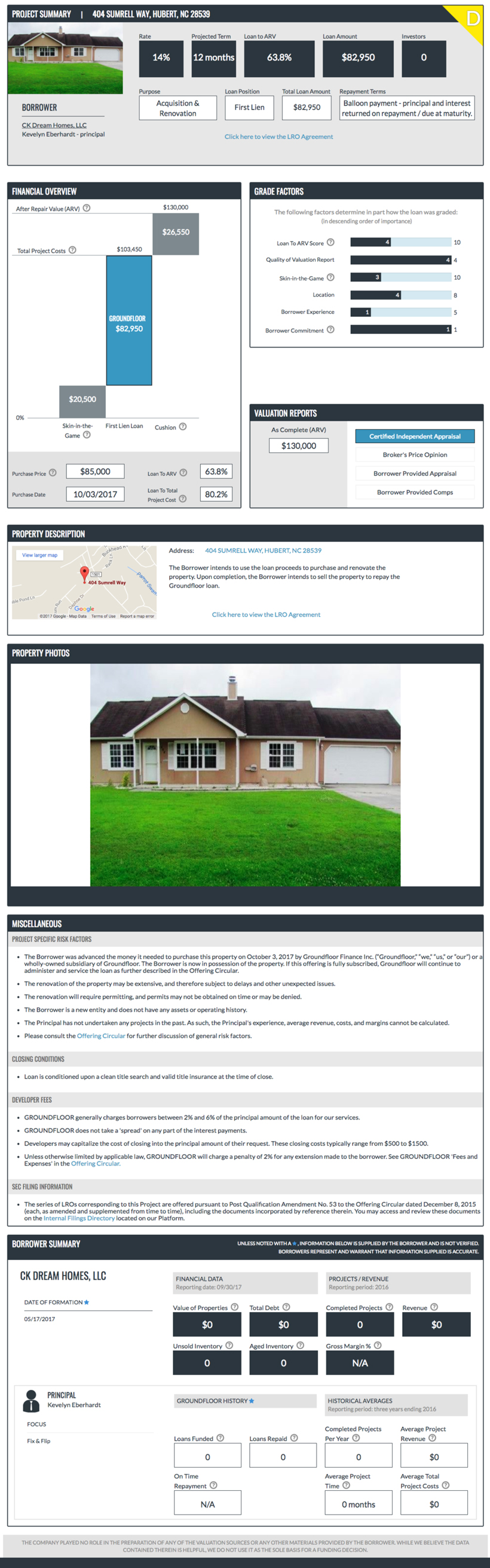 Developer (borrowing entity): CK Dream Homes, LLC
