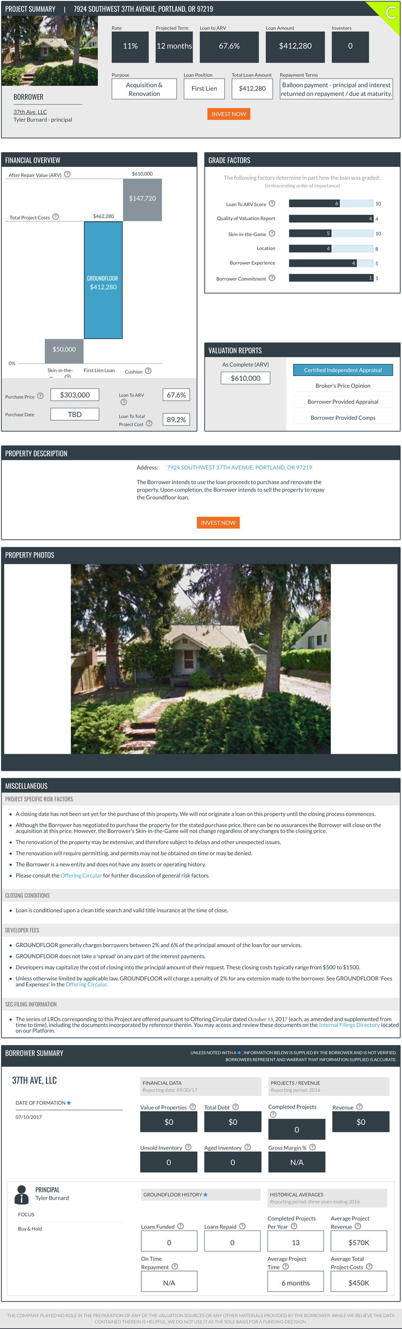0001144204-17-052465.txt : 20171013 0001144204-17-052465.hdr.sgml : 20171013 20171013170753 ACCESSION NUMBER: 0001144204-17-052465 CONFORMED SUBMISSION TYPE: 1-A PUBLIC DOCUMENT COUNT: 21 FILED AS OF DATE: 20171013 DATE AS OF CHANGE: 20171013 FILER: COMPANY DATA: COMPANY CONFORMED NAME: GROUNDFLOOR FINANCE INC. CENTRAL INDEX KEY: 0001588504 STANDARD INDUSTRIAL CLASSIFICATION: REAL ESTATE [6500] IRS NUMBER: 463414189 STATE OF INCORPORATION: GA FISCAL YEAR END: 1231 FILING VALUES: FORM TYPE: 1-A SEC ACT: 1933 Act SEC FILE NUMBER: 024-10753 FILM NUMBER: 171137077 BUSINESS ADDRESS: STREET 1: 3423 PIEDMONT RD NE CITY: ATLANTA STATE: 2Q ZIP: 30305 BUSINESS PHONE: 919-442-8625 MAIL ADDRESS: STREET 1: 3423 PIEDMONT RD NE CITY: ATLANTA STATE: 2Q ZIP: 30305 FORMER COMPANY: FORMER CONFORMED NAME: GROUNDFLOOR Inc. DATE OF NAME CHANGE: 20131004 1-A 1 primary_doc.xml 1-A LIVE 0001588504 XXXXXXXX GROUNDFLOOR FINANCE INC. GA 2013 0001588504 6199 46-3414189 25 0 75 Fifth Street, NW Suite 2170 ATLANTA GA 30308 404-850-9225 Nick Bhargava Other 921594.00 0.00 20120085.00 433452.00 21507228.00 16872490.00 0.00 22787493.00 -1280265.00 21507228.00 804936.00 117587.00 102471.00 -1976473.00 -1.75 -1.75 Hughes Pittman and Gupton LLP Common Stock 1132406 000000N/A N/A Series Seed 568796 000000N/A N/A Series A Preferred Stock 747373 000000N/A N/A Convertible Promissory Notes 825000 000000N/A N/A true true Tier2 Audited Other(describe) Limited Recourse Obligation (LRO), a limited debt obligation of the issuer Y Y N Y N N 585860 0 10.0000 585860.00 0.00 18838600.00 1077900.00 20502360.00 Hughes Pittman & Gupton, LLP 38000.00 Smith Anderson; Robbins Ross 20000.00 N/A 10000.00 The response to "Number of securities offered" above represents the aggregate principal amount of LROs being offered by the issuer. true AL AK AZ AR CA CO CT DE FL GA HI ID IL IN IA KS KY LA ME MD MA MI MN MS MO MT NE NV NH NJ NM NY NC ND OH OK OR PA RI SC SD TN TX UT VT VA WA WV WI WY DC Groundfloor Finance Inc. LROs 18838600 0 LROs in the amount of $18,838,600 were issued and sold pursuant to Offering Circular File No. 024-10496 (as may be amended and supplemented from time to time). Groundfloor Finance Inc. LROs 2222890 0 LROs in the amount of $2,222,890 were issued and sold to accredited investors. Groundfloor Finance Inc. Subordinated Convertible Promissory Notes 825000 0 Subordinated convertible promissory notes were issued for aggregate principal amount of $825,000. Regulation A, Rule 506 of Regulation D, and Rule 506 of Regulation D, respectively. PART II AND III 2 tv476880_partiiandiii.htm PART II AND III