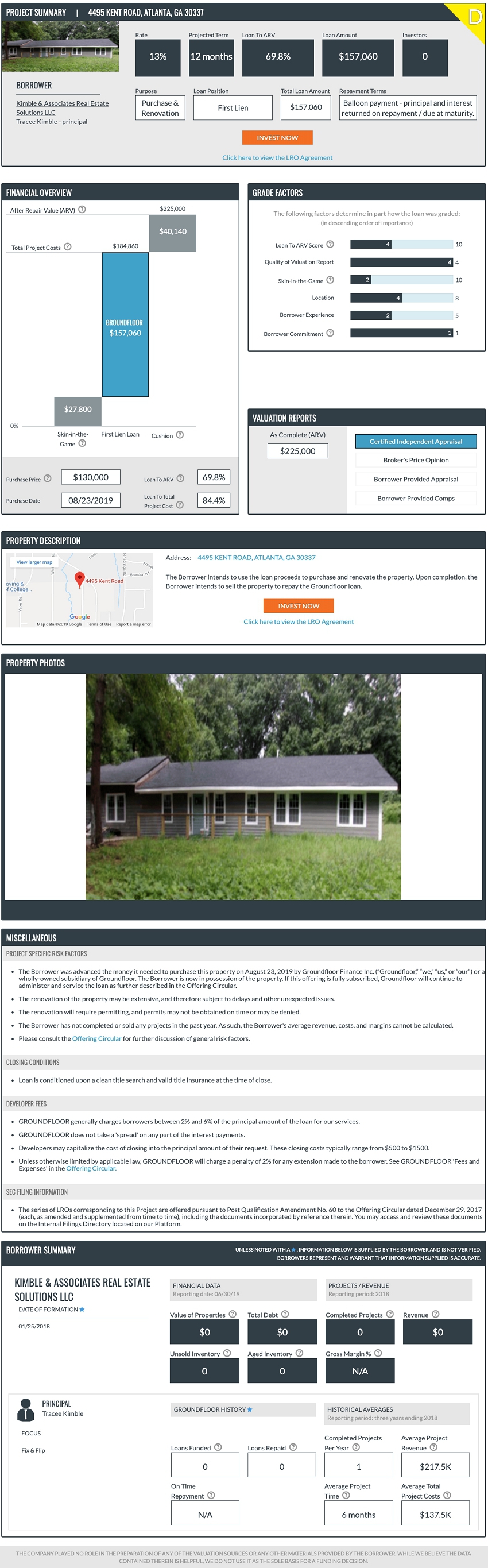 We make LROs available for investment on our web-based investment platform www.groundfloor.com (the “Groundfloor Platform”). Our principal offices and mailing address are located at 600 Peachtree Street, Suite 810, Atlanta, GA 30308. The phone number for these offices is (404) 850-9225.