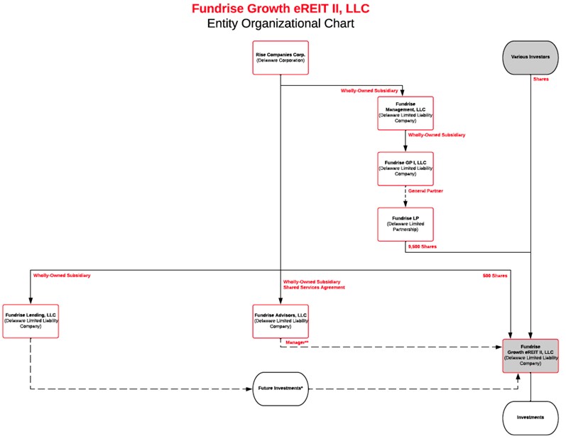Fundrise Growth eREIT II, LLC (the “Growth eREIT II”, the “Company”, “us”, “we”, “our” and other similar terms) is a Delaware limited liability company formed to originate, invest in and manage a diversified portfolio of commercial real estate properties. Through November 8, 2023, we have raised an aggregate of approximately $148.4 million in capital pursuant to Regulation A of the Securities Act of 1933, as amended (“Regulation A”) (not including the approximately $100,000 received in private placements to our sponsor, Rise Companies Corp., and Fundrise, L.P., an affiliate of our sponsor, and the approximately $2.7 million received in private placements to third party accredited investors pursuant to Regulation D of the Securities Act of 1933 (“Regulation D”)). We expect to continue to use substantially all of the net proceeds from this offering to originate, acquire and structure a diversified portfolio of commercial real estate properties. We may also invest, to a limited extent, in commercial real estate loans, as well as commercial real estate debt securities (including commercial mortgage-backed securities (“CMBS”), collateralized debt obligations (“CDOs”), and REIT senior unsecured debt) and other real estate-related assets, where the underlying assets primarily consist of commercial real estate properties. We may make our investments through majority-owned subsidiaries, some of which may have rights to receive preferred economic returns.