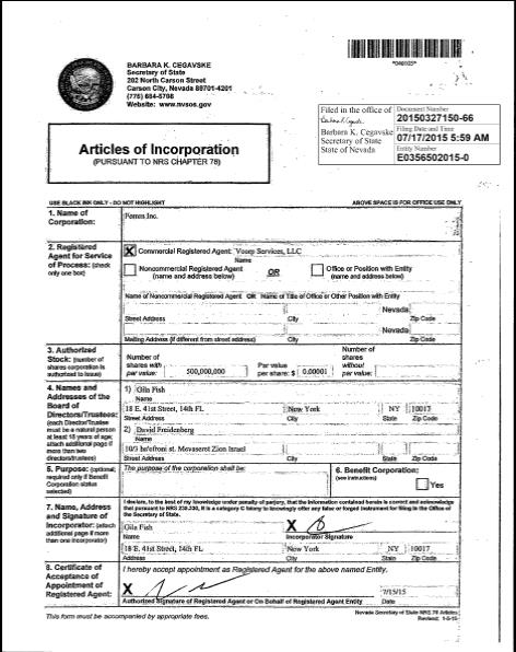The Company’s current Board of Directors is composed of Gila Fish and David Friedenberg.
