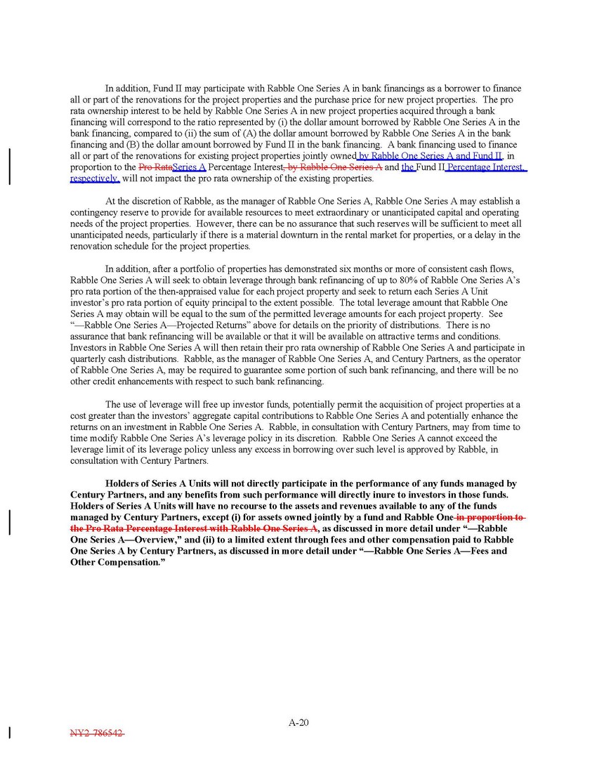 Rabble One Series A meets all of the conditions of ASC 970-810-45-1 with respect to the Properties, and conditions (a), (c), (d) and (e) thereunder are reflected in the Form of Joint Venture Agreement included in Exhibit B attached hereto and condition (b) thereunder is reflected in the Form of Series A Operating Agreement included in Exhibit B attached hereto. First, the Properties are owned by undivided interests because the Properties will be jointly owned by Rabble One Series A in proportion to the Series A Percentage Interest and by Fund II in proportion to the Fund II Percentage Interest. Second, the approval of Rabble, as the manager of Rabble One Series A, will not be required for any actions or decisions taken or made by Century Partners, as the operator of Rabble One Series A, regarding the financing, development, sale or operations of the Properties, except for actions or decisions relating to modifying Rabble One Series A’s leverage policy or obtaining or seeking to obtain leverage through bank refinancing greater than 80% of the portion (equal to the Series A Percentage Interest) of the then appraised value for each Property, in which case such actions and decisions will require the approval of Rabble in consultation with Century Partners. Third, Rabble One Series A and Fund II are only entitled to their share of income from the Properties, including rental payments and sale proceeds, equal to the Series A Percentage Interest and the Fund II Percentage Interest, respectively, as of the relevant date. Fourth, Rabble One Series A and Fund II are only obligated to pay their share of fees and expenses with respect to the Properties equal to the Series A Percentage Interest and the Fund II Percentage Interest, respectively, as of the relevant date. Fifth, Rabble One Series A and Fund II are each severally liable only for their share of indebtedness or other financial obligations incurred in respect of the Properties, along with the associated borrowing costs and expenses, equal to the Series A Percentage Interest and the Fund II Percentage Interest, respectively, as of the relevant date. The disclosures on pages A-6, 8, 10, 11, 16, 17, 20, 22, 23, 24 and 25 have been revised accordingly.