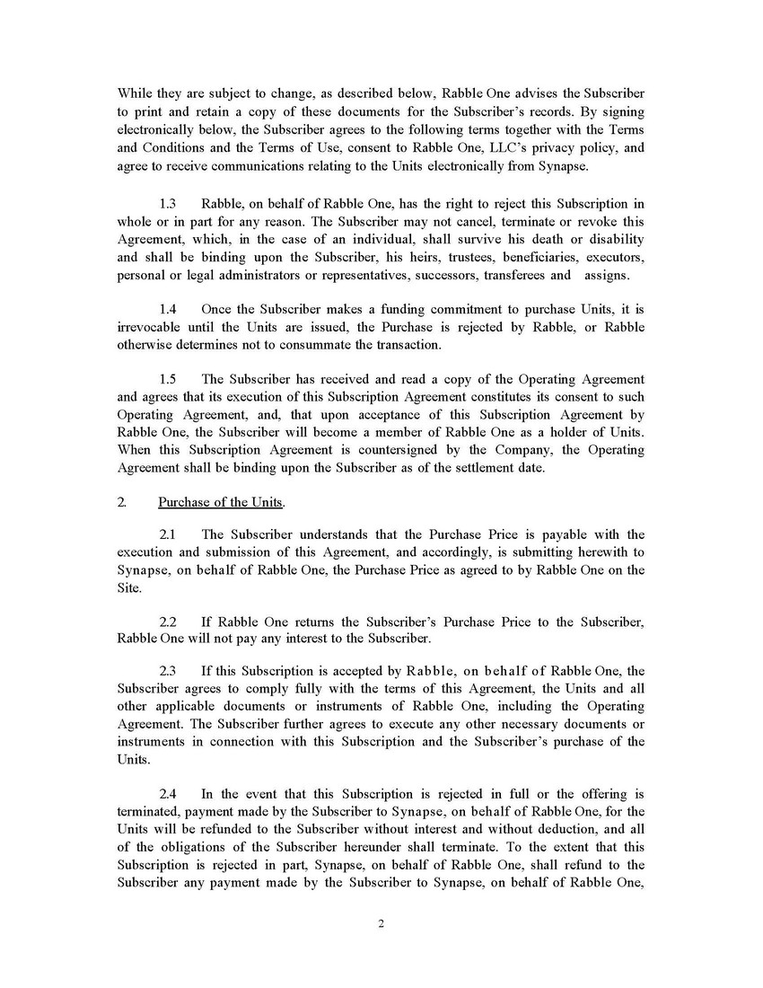 DESCRIPTION OF RABBLE ONE SERIES B UNITS 69