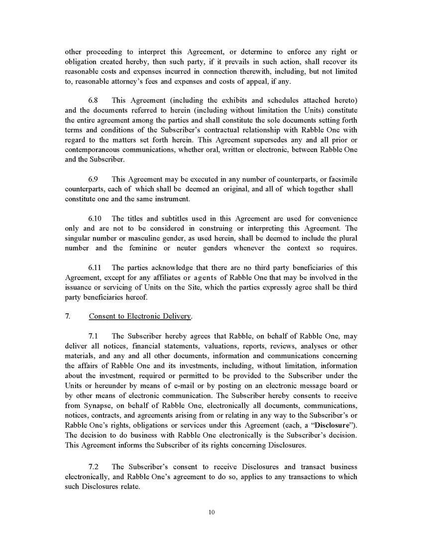 DESCRIPTION OF RABBLE ONE, LLC OPERATING AGREEMENT 71