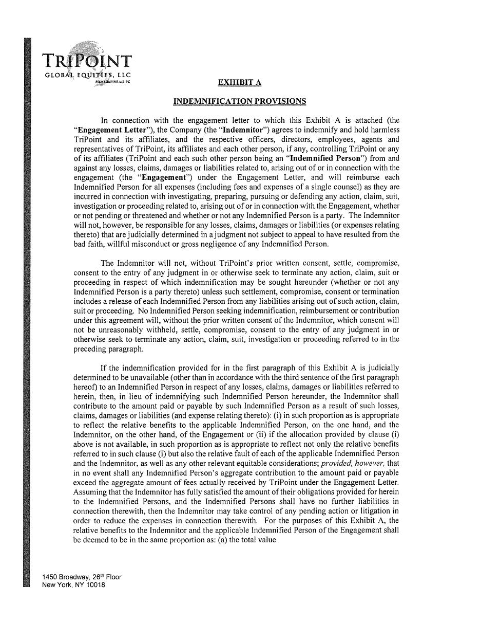 We have not, and the Selling Agent has not, authorized anyone to provide any information other than that contained or incorporated by reference in this Offering Circular prepared by us or to which we have referred you. Neither we nor the Selling Agent take responsibility for, and can provide no assurance as to the reliability of, any other information that others may give you. This Offering Circular is an offer to sell only the Common Stock offered hereby but only under circumstances and in jurisdictions where it is lawful to do so. The information contained in this Offering Circular is current only as of its date, regardless of the time of delivery of this Offering Circular or any sale of Common Stock.