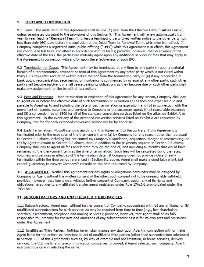 11. Termination. This Agreement will terminate upon the Final Termination Date.