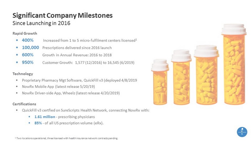 5 Results from NowRx-run survey of existing NowRx customers with 207 respondents, launched on August 5, 2019.