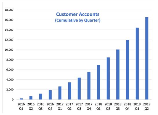The following table illustrates the cumulative number of customers since the company commenced operations.