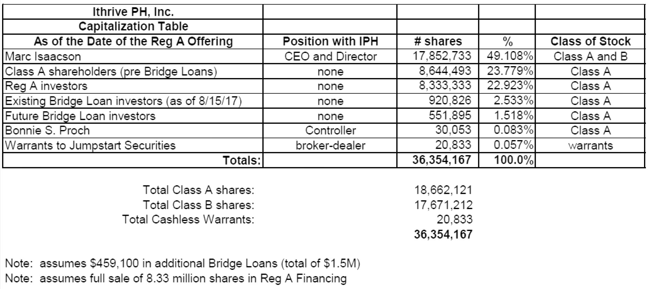 This offering (the "Offering") consists of Class A Non-Voting Stock (the "Shares" or individually, each a "Share") that is being offered on a "best efforts" basis, which means that there is no guarantee that any minimum amount will be sold. The Shares are being offered and sold by Ithrive