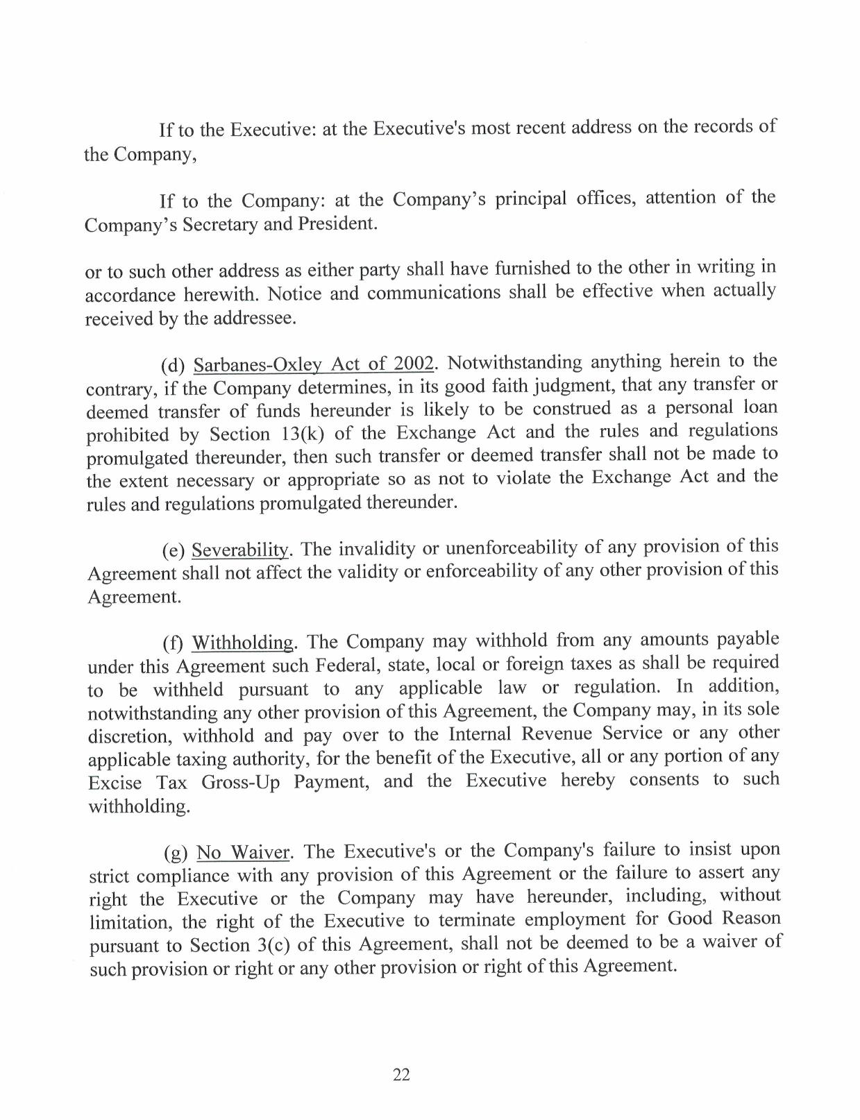 Section 6. NOTICE. Notice of the date, time and place of any special meeting shall be given to each director at least two days prior to the meeting by written notice either personally delivered or mailed to each director at his business address, or by notice transmitted by private courier, electronically transmitted facsimile or other form of wire or wireless communication. If mailed, such notice shall be deemed to be given and to be effective when deposited in the United States mail, properly addressed, with first class postage prepaid. If notice is given by electronically transmitted facsimile or other similar form of wire or wireless communication, such notice shall be deemed to be given and to be effective when sent. If a director has designated in writing one or more reasonable addresses or facsimile numbers for delivery of notice to him, notice sent by mail, electronically transmitted facsimile or other form of wire or wireless communication shall not be deemed to have been given or to be effective unless sent to such addresses or facsimile numbers, as the case may be.