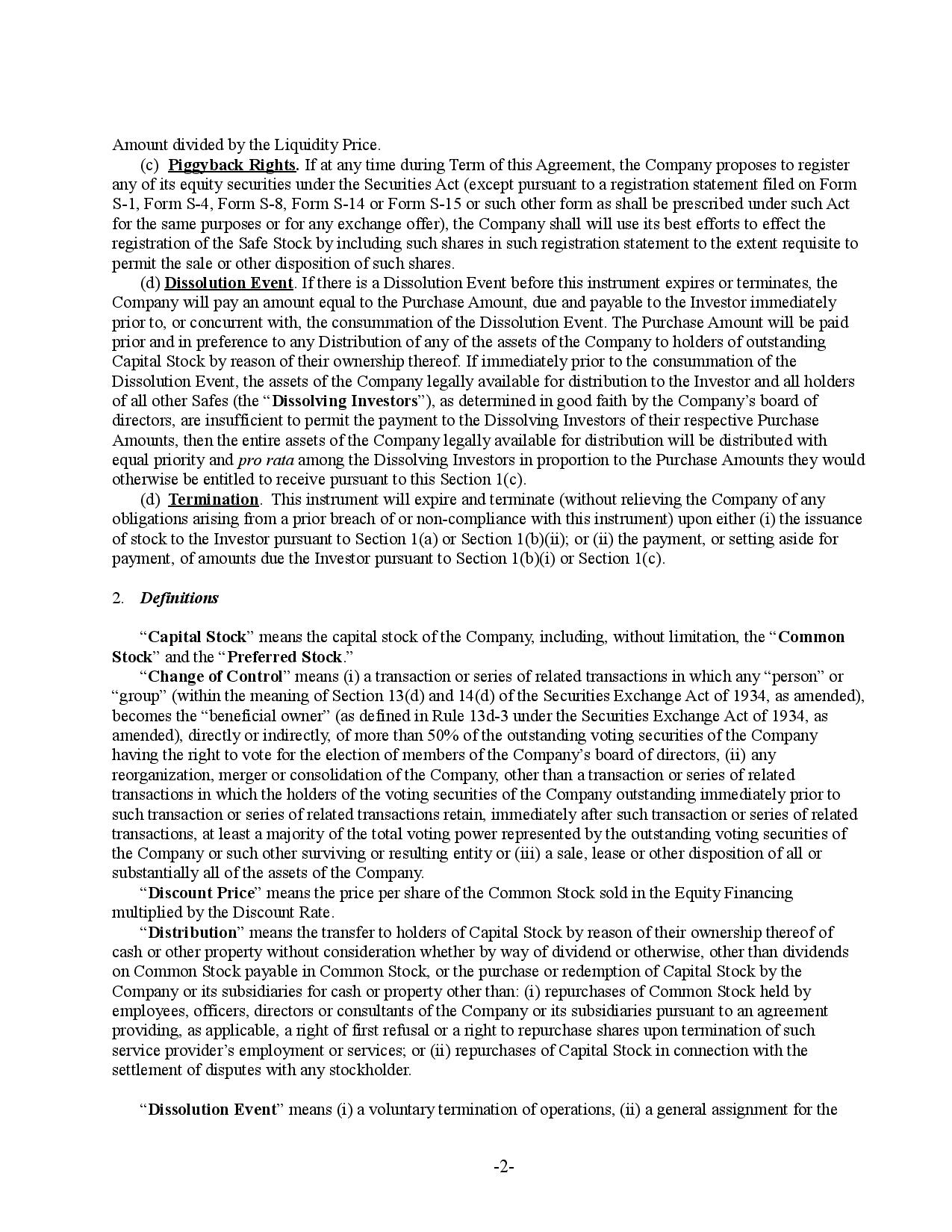 No sale may be made to you in this offering if the aggregate purchase price you pay is more than 10% of the greater of your annual income or your net worth. Different rules apply to accredited investors and non-natural persons. Before making any representation that your investment does not exceed applicable thresholds, we encourage you to review Rule 251(d)(2)(i)(C) of Regulation A. For general information on investing, we encourage you to refer to www.investor.gov.