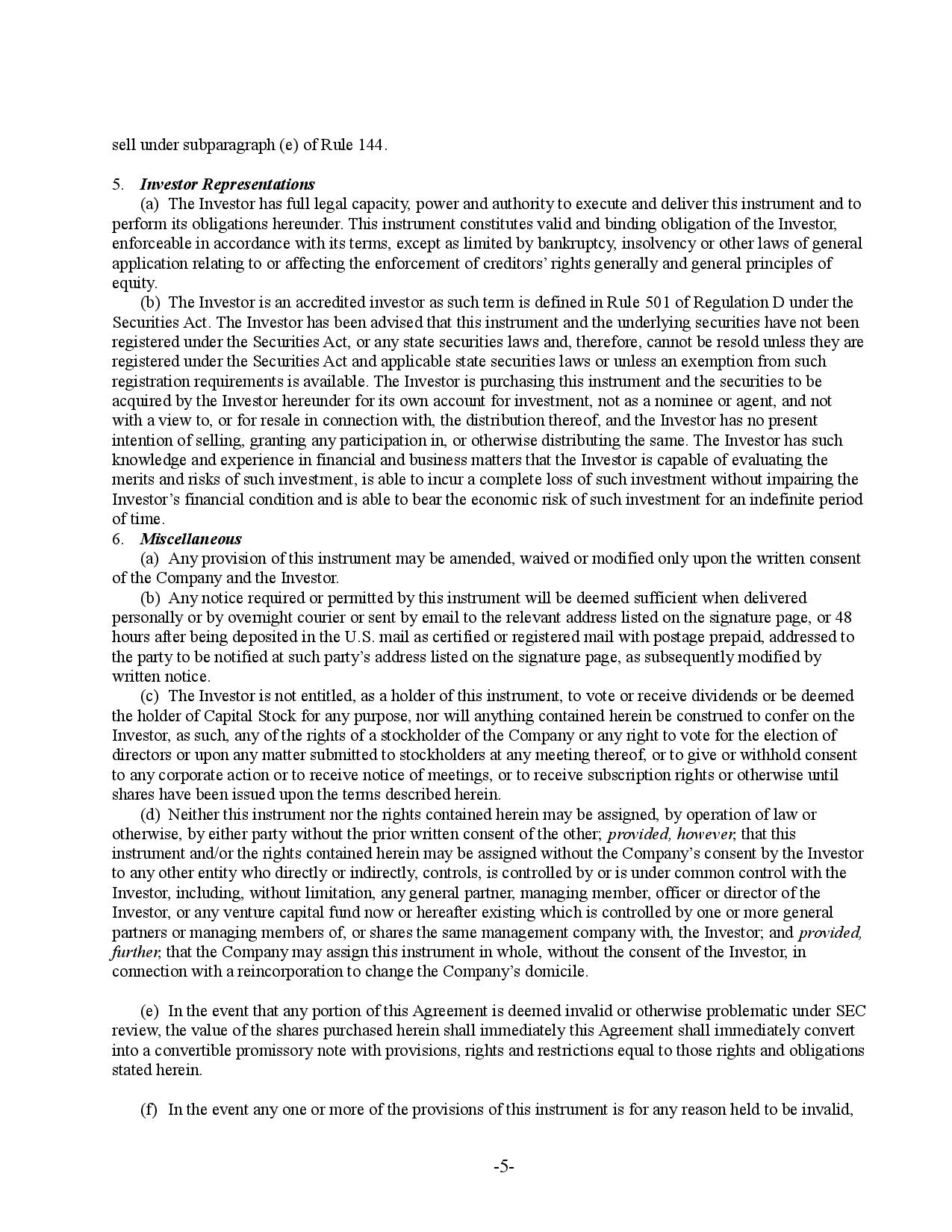 Generally, no sale may be made to you in this Offering if the aggregate purchase price you pay is more than 10% of the greater of your annual income or net worth. Different rules apply to accredited investors and non-natural persons. Before making any representation that your investment does not exceed applicable thresholds, we encourage you to review Rule 251(d)(2)(i)(C) of Regulation A. For general information on investing, we encourage you to refer to www.investor.gov
