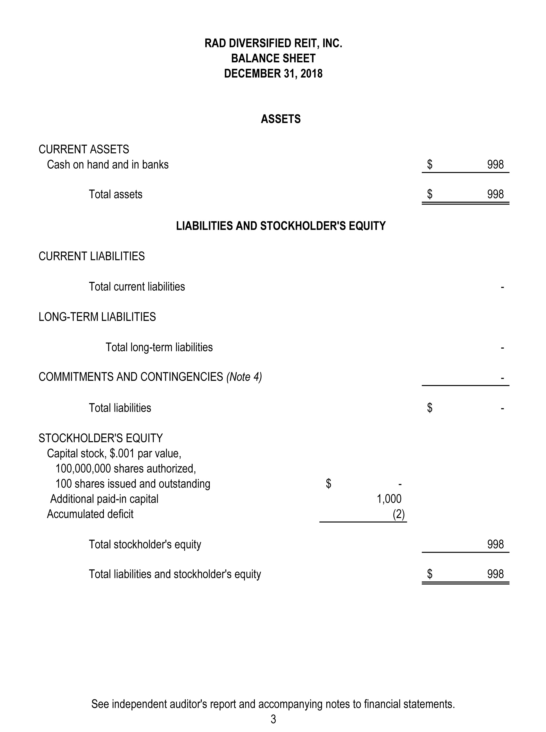 RAD DIVERSIFIED REIT, INC.