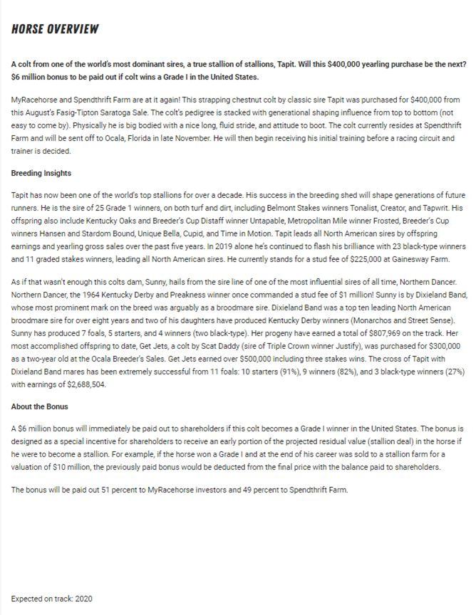 · Sale of the Series Palace Foal Interests began on or about July 11, 2019.