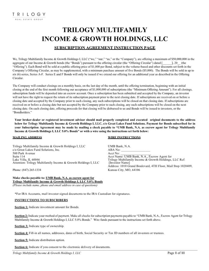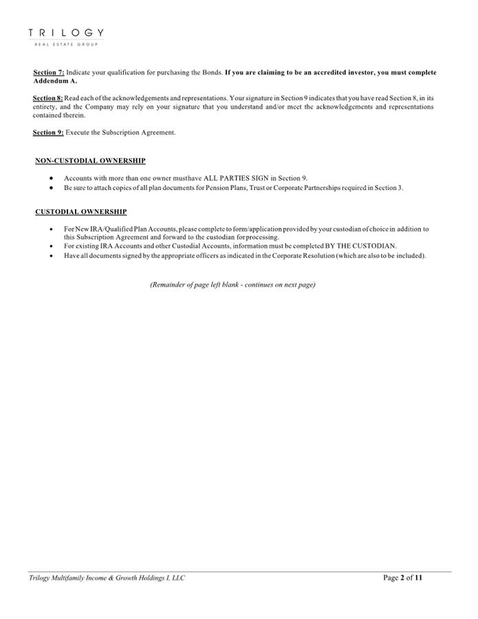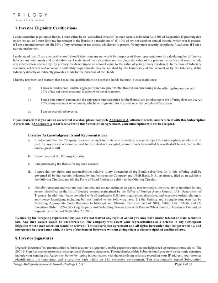 TRILOGY MULTIFAMILY INCOME & GROWTH HOLDINGS I,