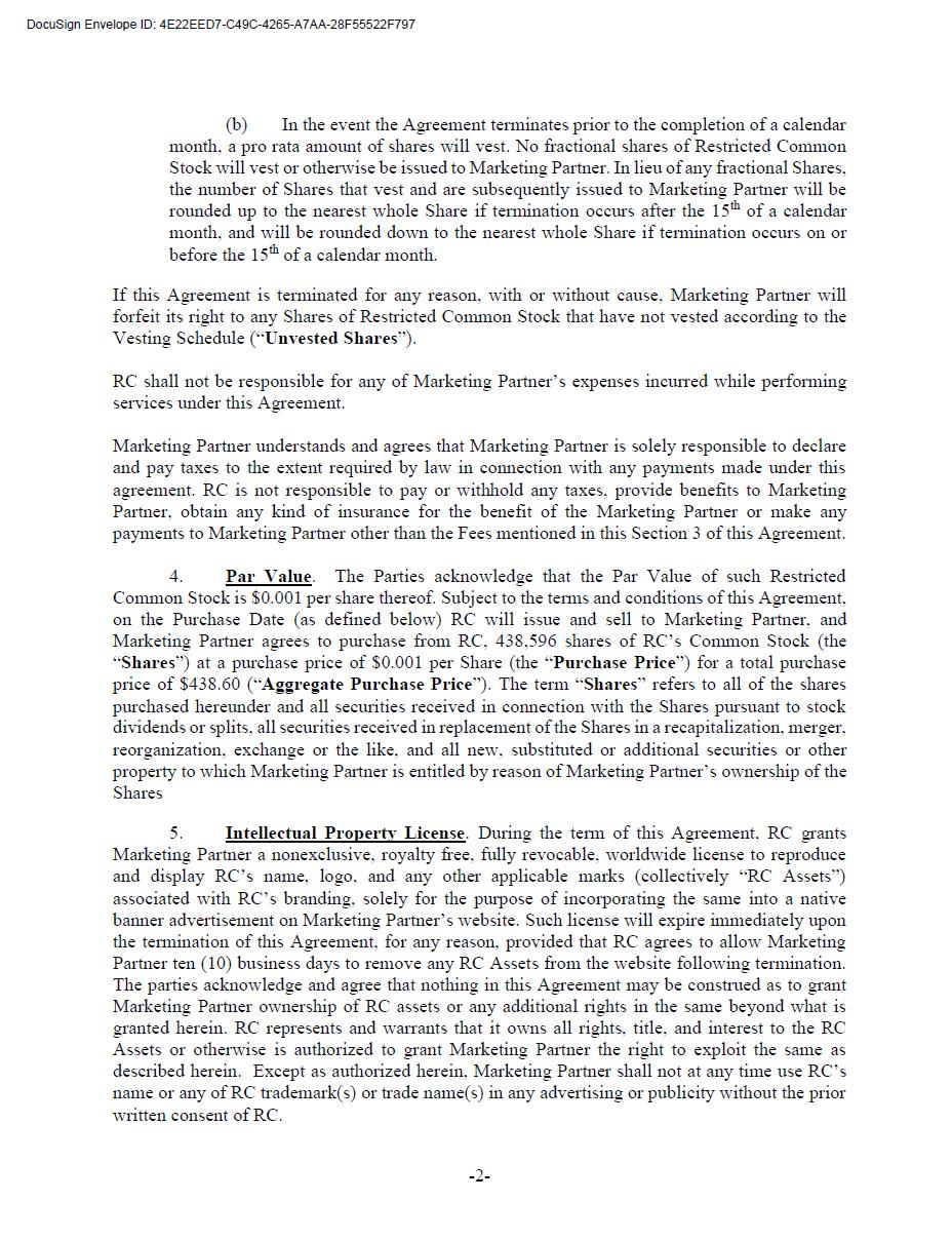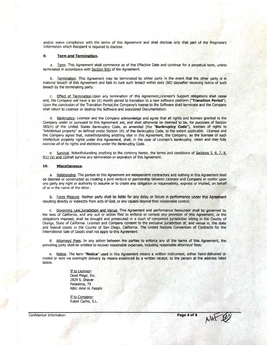 0001493152-21-005682.txt : 20210309 0001493152-21-005682.hdr.sgml : 20210309 20210309164301 ACCESSION NUMBER: 0001493152-21-005682 CONFORMED SUBMISSION TYPE: 1-A/A PUBLIC DOCUMENT COUNT: 67 FILED AS OF DATE: 20210309 DATE AS OF CHANGE: 20210309 FILER: COMPANY DATA: COMPANY CONFORMED NAME: Robot Cache US Inc. CENTRAL INDEX KEY: 0001832460 STANDARD INDUSTRIAL CLASSIFICATION: SERVICES-PREPACKAGED SOFTWARE [7372] IRS NUMBER: 825320942 STATE OF INCORPORATION: DE FILING VALUES: FORM TYPE: 1-A/A SEC ACT: 1933 Act SEC FILE NUMBER: 024-11431 FILM NUMBER: 21726510 BUSINESS ADDRESS: STREET 1: 5910 PACIFIC CENTER BOULEVARD, SUITE 310 CITY: SAN DIEGO STATE: CA ZIP: 92121 BUSINESS PHONE: 8582524001 MAIL ADDRESS: STREET 1: 5910 PACIFIC CENTER BOULEVARD, SUITE 310 CITY: SAN DIEGO STATE: CA ZIP: 92121 1-A/A 1 primary_doc.xml 1-A/A LIVE 0001832460 XXXXXXXX 024-11431 true Robot Cache US Inc. DE 2018 0001832460 7372 82-5320942 5 0 5910 PACIFIC CENTER BOULEVARD SUITE 310 SAN DIEGO CA 92121 8582524001 Gary J. Ross Other 29549.00 19180.00 0.00 0.00 1097225.00 151063.00 2789590.00 3133321.00 -2036096.00 1097225.00 10439.00 601361.00 305510.00 -1063203.00 -0.01 -0.01 Interim Statements are unaudited Common Stock 95691218 000000000 None None 0 000000000 None None 0 000000000 None true true Tier2 Audited Equity (common or preferred stock) Option, warrant or other right to acquire another security Y N N Y N N 16501650 0 0.6060 10000000.00 0.00 0.00 0.00 10000000.00 OpenDeal Broker LLC 600000.00 NA 0.00 NA 0.00 IndigoSpire CPA Group, LLC 42000.00 Ross Law Group, PLLC 60000.00 NA 0.00 NA 0.00 297797 9293000.00 The estimated proceeds are calculated after subtracting estimated offering costs of $600,000 for underwriters; $60,000 for legal fee and $42,000 for accounting and audit. true AL AK AZ AR CA CO CT DE FL GA HI ID IL IN IA KS KY LA ME MD MA MI MN MS MO MT NE NV NH NJ NM NY NC ND OH OK OR PA RI SC SD TN TX UT VT VA WA WV WI WY DC AL AK AZ AR CA CO CT DE FL GA HI ID IL IN IA KS KY LA ME MD MA MI MN MS MO MT NE NV NH NJ NM NY NC ND OH OK OR PA RI SC SD TN TX UT VT VA WA WV WI WY DC Robot Cache US Inc. Common Stock 9980170 0 $6,861,680.16 in SAFTs which were exchanged for the stock. Robot Cache US Inc. Common Stock 250000 0 $0, advisory services only. Section 3(a)(9); Rule 701 PART II AND III 2 partiiandiii.htm