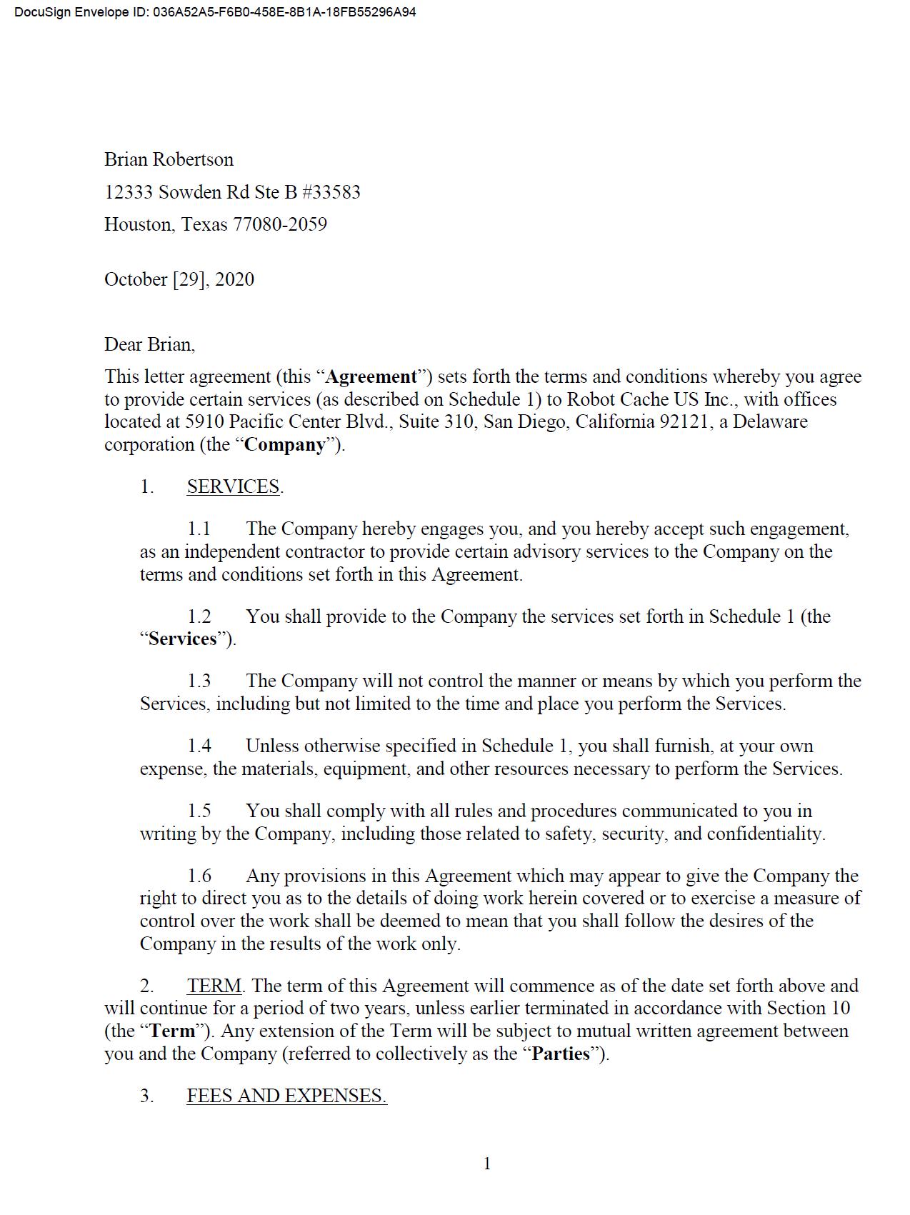RobotCache.com (the contents of which do not constitute part of this Offering Circular))