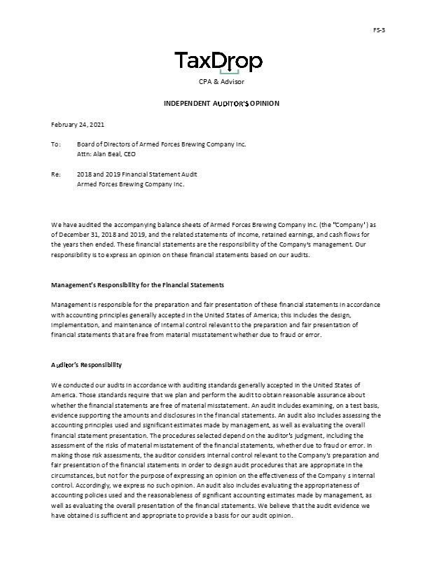 Armed Forces Brewing Company, Inc. (A Delaware Corporation)