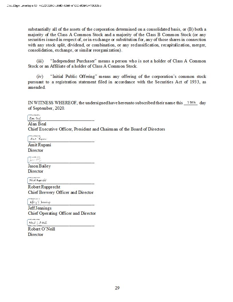 0001832987-23-000016.txt : 20230828 0001832987-23-000016.hdr.sgml : 20230828 20230825190635 ACCESSION NUMBER: 0001832987-23-000016 CONFORMED SUBMISSION TYPE: 1-A/A PUBLIC DOCUMENT COUNT: 20 FILED AS OF DATE: 20230828 DATE AS OF CHANGE: 20230825 FILER: COMPANY DATA: COMPANY CONFORMED NAME: Armed Forces Brewing Company, Inc. CENTRAL INDEX KEY: 0001832987 STANDARD INDUSTRIAL CLASSIFICATION: MALT BEVERAGES [2082] IRS NUMBER: 843443086 STATE OF INCORPORATION: DE FISCAL YEAR END: 1231 FILING VALUES: FORM TYPE: 1-A/A SEC ACT: 1933 Act SEC FILE NUMBER: 024-12221 FILM NUMBER: 231209743 BUSINESS ADDRESS: STREET 1: 1420 CATLYN PLACE CITY: ANNAPOLIS STATE: MD ZIP: 21401 BUSINESS PHONE: 4109994117 MAIL ADDRESS: STREET 1: 1420 CATLYN PLACE CITY: ANNAPOLIS STATE: MD ZIP: 21401 FORMER COMPANY: FORMER CONFORMED NAME: Seawolf Brewing Co Inc DATE OF NAME CHANGE: 20201118 1-A/A 1 primary_doc.xml 1-A/A LIVE 0001832987 XXXXXXXX 024-12221 true false true Armed Forces Brewing Company, Inc. DE 2019 0001832987 5180 84-3443086 5 0 1001 BOLLING AVENUE 406 NORFOLK VA 23508 7579002322 Kendall Almerico Other 1128108.00 0.00 57486.00 0.00 2013376.00 146552.00 117863.00 289836.00 1723539.00 2013376.00 171937.00 257452.00 9596.00 -913800.00 0.00 0.00 Tax Drop Class A Common 2589221 N/A N/A Class B Common 797953 N/A N/A Class C Common 1528878 N/A N/A N/A 0 N/A N/A N/A 0 N/A N/A true true false Tier2 Audited Equity (common or preferred stock) Y N N Y N N 400000 1528878 12.5000 5000000.00 0.00 3006170.00 0.00 8006170.00 Cultivate Capital Group LLC 250000.00 Tax Drop 4000.00 Kendall A. Almerico PA 130000.00 300634 4550000.00 false true AL AK AZ AR CA CO CT DE DC FL GA HI ID IL IN IA KS KY LA ME MD MA MI MN MS MO MT NE NV NH NJ NM NY NC ND OH OK OR PA PR RI SC SD TN TX UT VT VA WA WV WI WY A0 A1 A2 A3 A4 A5 A6 A7 A8 A9 B0 Z4 AL AK AZ AR CA CO CT DE DC FL GA HI ID IL IN IA KS KY LA ME MD MA MI MN MS MO MT NE NV NH NJ NM NY NC ND OH OK OR PA PR RI SC SD TN TX UT VT VA WA WV WI WY A0 A1 A2 A3 A4 A5 A6 A7 A8 A9 B0 Z4 false Armed Forces Brewing Company Inc. Class C Common 300617 0 $3,006,170 at $10 per share Regulation A Tier 2 EX1A-1 UNDR AGMT 3 afbcrega2bdagreement.htm