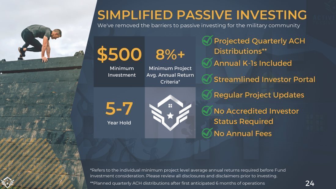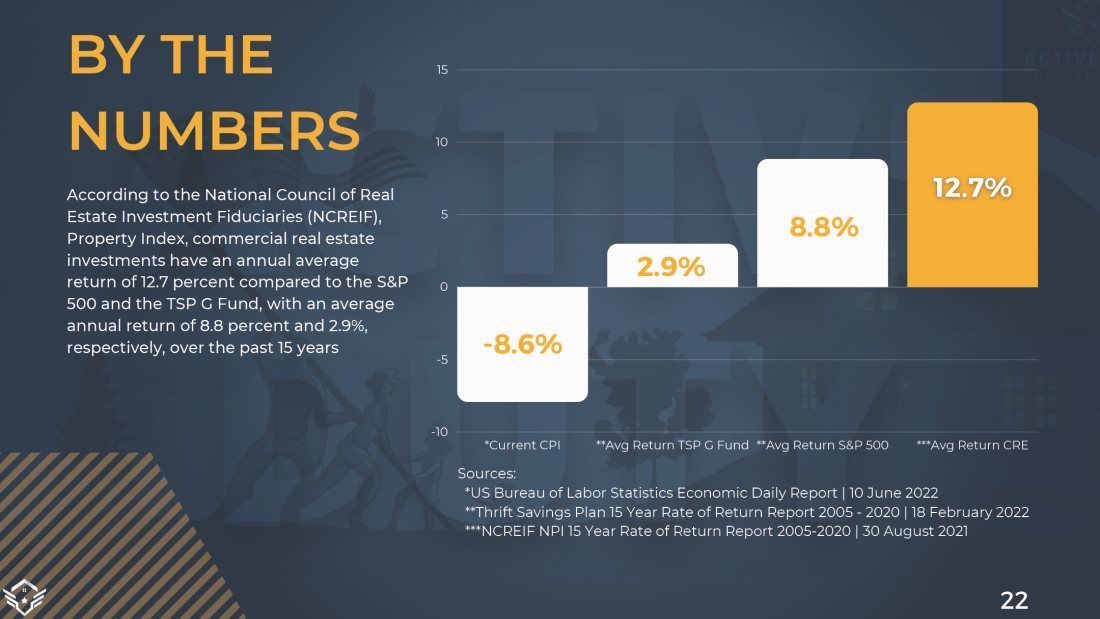 By removing the barriers to entry like accreditation status, high minimum investments, and investment return-sucking fees, we’ve armed the military community with the solution to fight inflation and preserve long- term wealth.