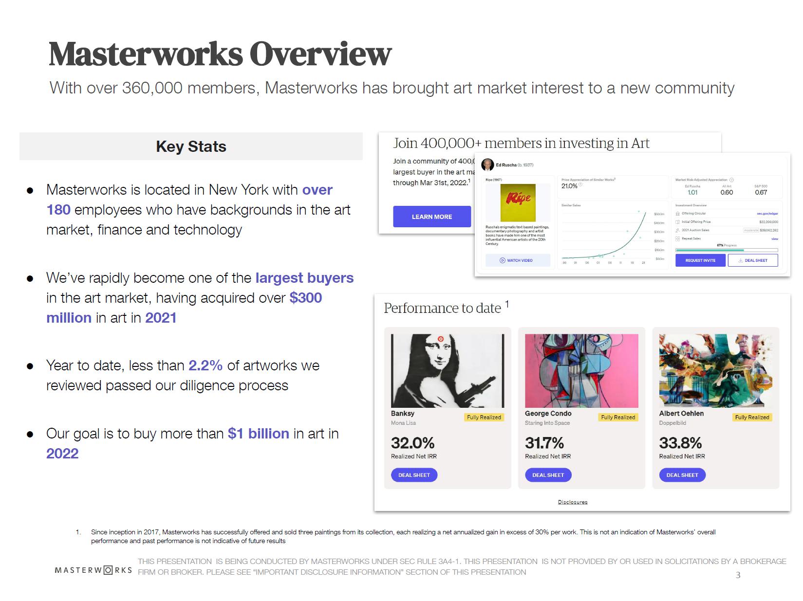 Our affiliate Masterworks.io, LLC owns an online investment platform located at https://www.masterworks.com/ (the “Masterworks Platform”) that allows investors to acquire ownership of an interest in special purpose companies that invest in distinct artworks or a collection of artworks. Once an investor establishes a user profile on the Masterworks Platform, they can browse and screen potential artwork investments, view details of an investment and sign contractual documents online.