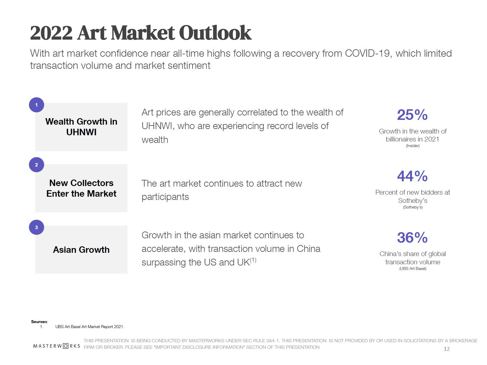 Certain data included in this offering circular is derived from information provided by third-parties that we believe to be reliable. The discussions contained in this offering circular relating to the Artwork, the artist, the art market, and the art industry are taken from third-party sources that the Company believes to be reliable and reasonable, and that the factual information is fair and accurate. Certain data is also based on our good faith estimates which are derived from management’s knowledge of the industry and independent sources. Industry publications, surveys and forecasts generally state that the information contained therein has been obtained from sources believed to be reliable, but there can be no assurance as to the accuracy or completeness of included information. We have not independently verified such third-party information, nor have we ascertained the underlying economic assumptions relied upon therein. The statistical data relating to the art market is difficult to obtain, may be incomplete, out-of-date, or inconsistent and you should not place undue reliance on any statistical or general information related to the art market included in this offering circular. The art market data used in this offering circular involves a number of assumptions and limitations, and you are cautioned not to give undue weight to such data. While we are not aware of any material misstatements regarding any market, industry or similar data presented herein, such data was derived from third party sources and reliance on such data involves risks and uncertainties.