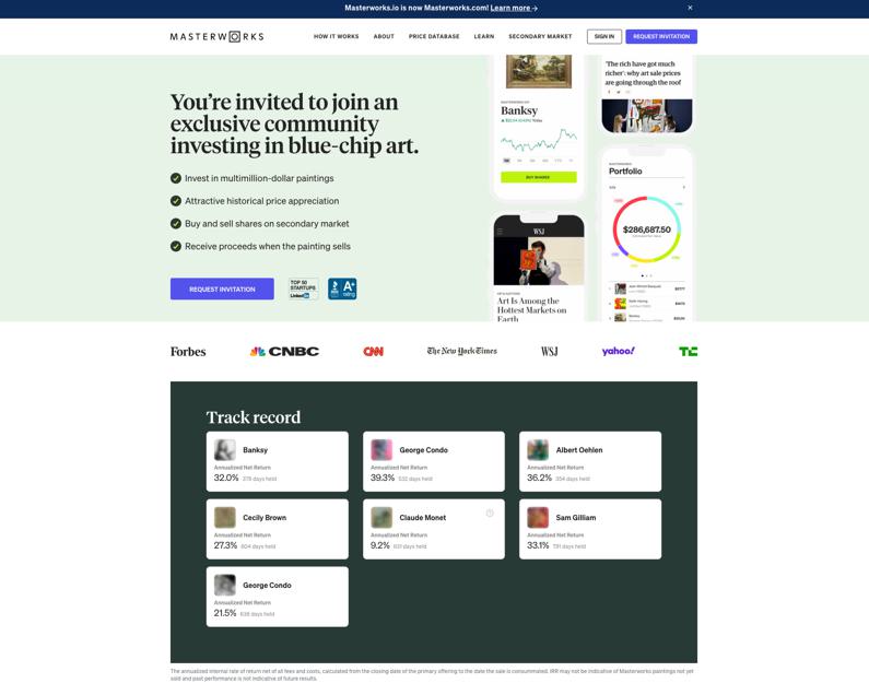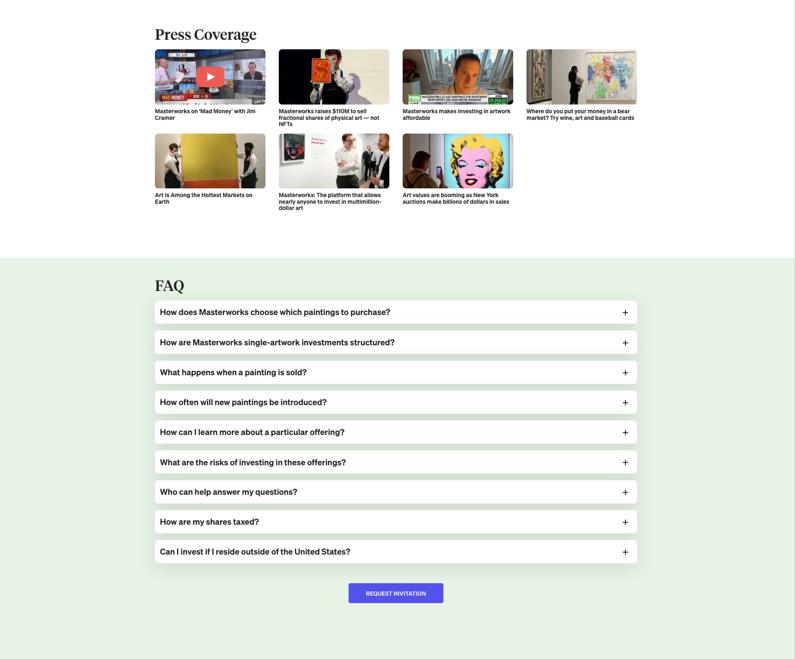 Our affiliate Masterworks, LLC owns an online investment platform located at https://www.masterworks.com/ (the “Masterworks Platform”) that allows investors to acquire ownership of an interest in special purpose companies that invest in distinct artworks or a collection of artworks. Once an investor establishes a user profile on the Masterworks Platform, they can browse and screen potential artwork investments, view details of an investment and sign contractual documents online.