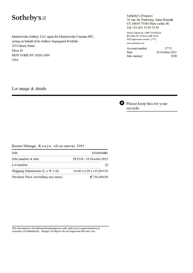 We believe that the Class A shares of a series represent an effective means for investors to gain economic exposure to the Artwork held by that series and an investment in multiple series can provide exposure to the broader Post-War and Contemporary collecting categories of the art market. Artwork will be held for an indefinite period and may be sold at any time following the final closing of the offering of such series.