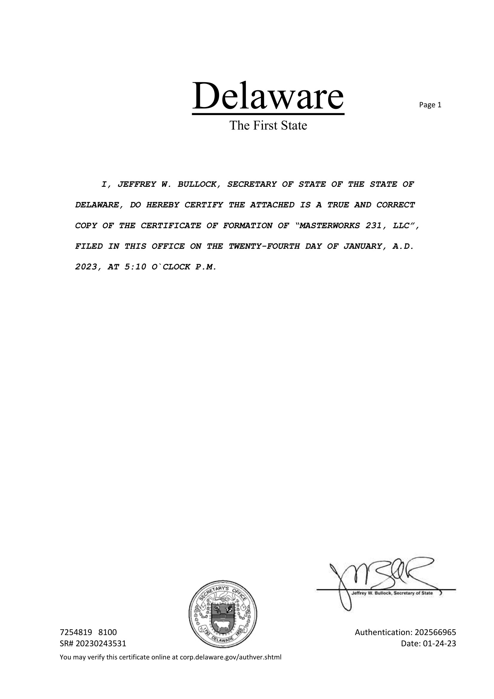 | ● | “we,” “our,” “ours,” “us,” “Masterworks 231” or the “Company,” refer to Masterworks 231, LLC, a Delaware limited liability company and, as the context requires, the segregated portfolio of Masterworks Cayman that will hold title to the Artwork. |