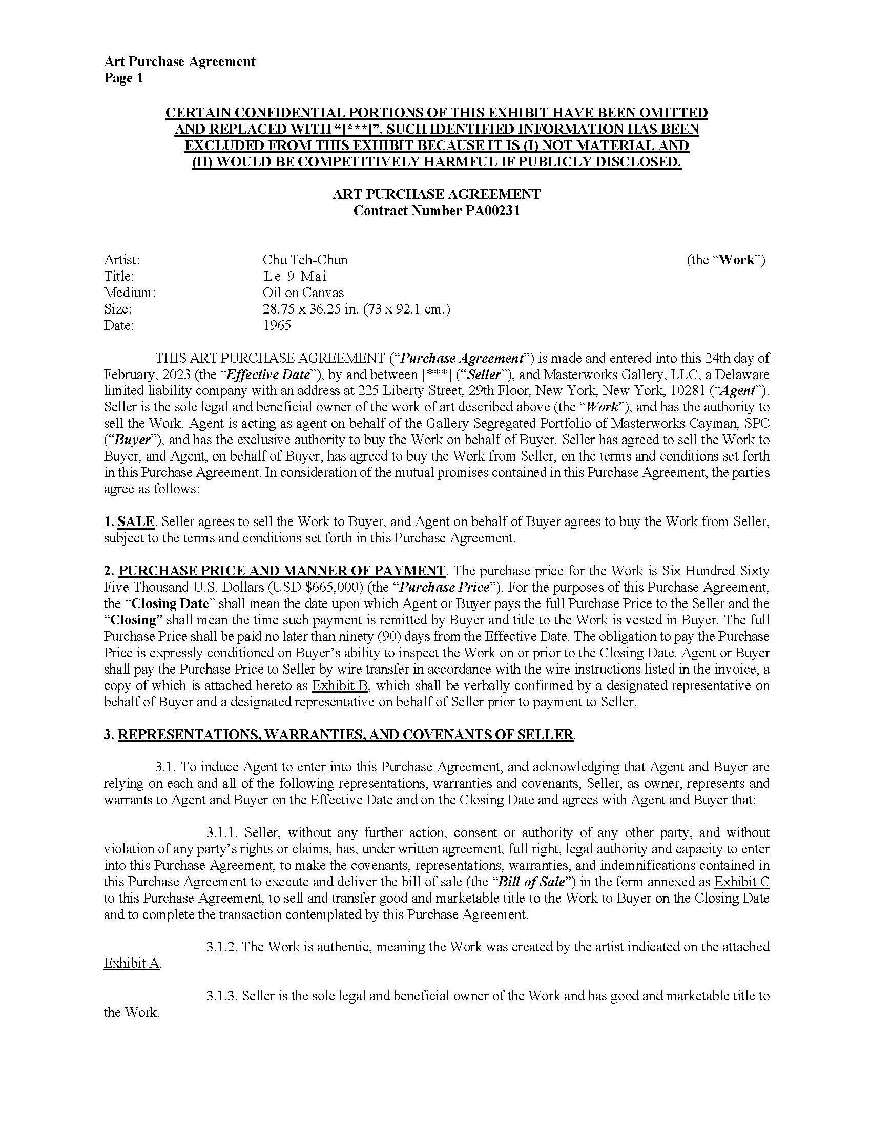 | ● | “Masterworks Platform” refers to the first online fine art investment platform located at https://www.masterworks.com/. The Masterworks Platform gives eligible investors the ability to: |