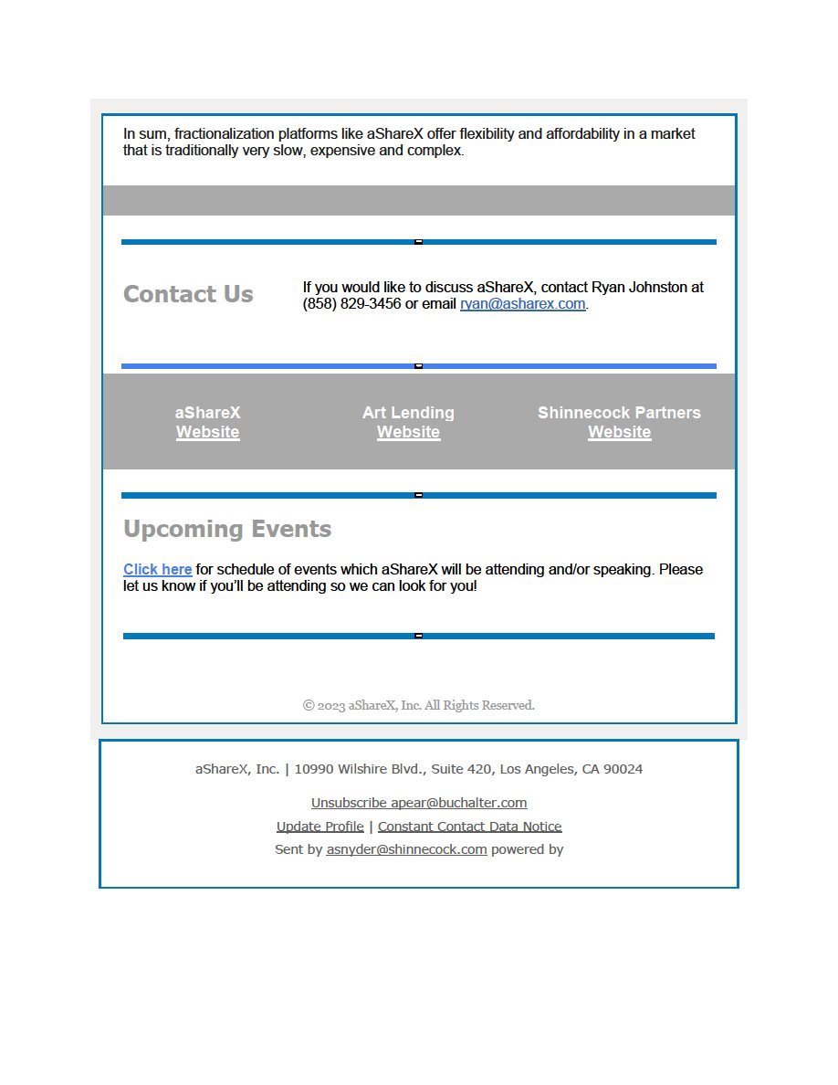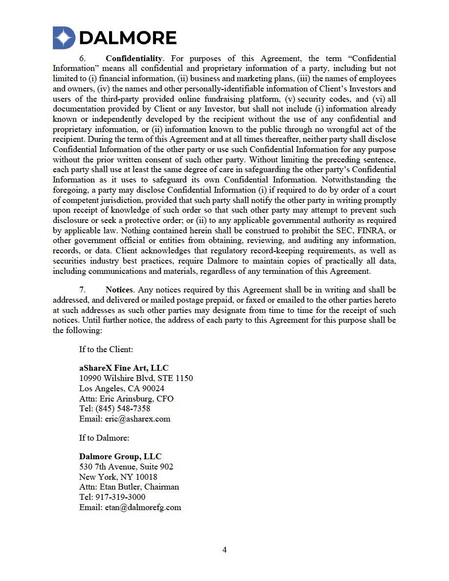 | aShareX Fine Art, LLC 10990 Wilshire Blvd., Suite 1150 Los Angeles, California 90024 |