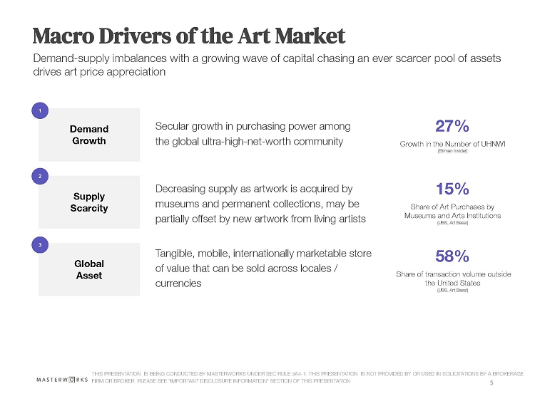 The Class A shares are to be offered through the Masterworks Platform. Neither Masterworks, LLC nor any other affiliated entity involved in the offer and sale of the Class A shares is currently a member firm of the Financial Industry Regulatory Authority, Inc. (“FINRA”) and no person associated with us will be deemed to be a broker solely by reason of his or her participation in the sale of the Class A shares.