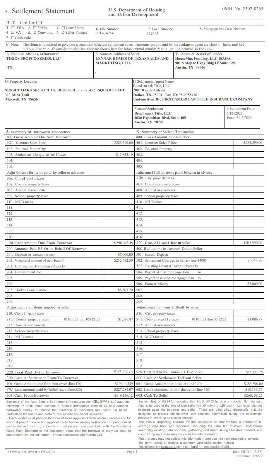 Tirios Propco Series LLC – 313 Mica