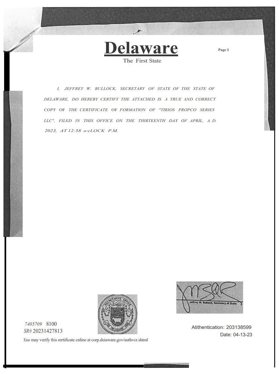 TIRIOS PROPCO SERIES LLC
