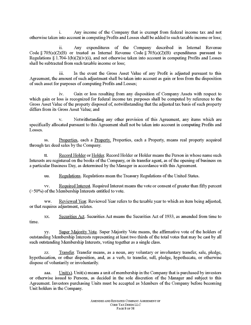 The Company is authorized to issue two classes of membership interests (“Interests”), Class A and Class B. The Company is authorized to issue as many Class A Interests as needed to fund its operations. The Company intends to raise up to $5,000,000.00 via the sale of Class A Interests. All Class B Interests have been issued to Tax Deed Investors LLC. Class A Interests will represent an aggregate of 50% of the equity in the Company and Class B Interests will represent 50% of the equity in the Company.