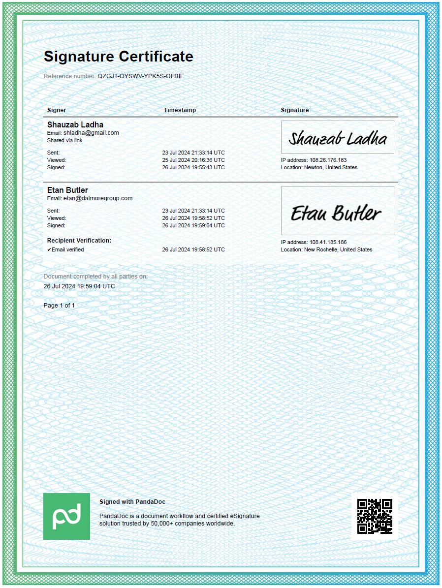 | 3. | Forte has retained the services of Dalmore Group, LLC (“Dalmore”) as a third-party independent broker to act as the broker of record in the sale of the Membership Interests. Dalmore is a broker firm registered with the Financial Industry Regulatory Authority (“FINRA”). Forte will pay Dalmore One Percent (1%) of the aggregate amount raised by Forte’s Platform. Forte will also pay Dalmore Twenty Thousand Dollars ($20,000) consulting fee, Five Thousand Dollars ($5,000) due diligence fee and the One Thousand Dollars ($1,000) 1-APOS fee. |